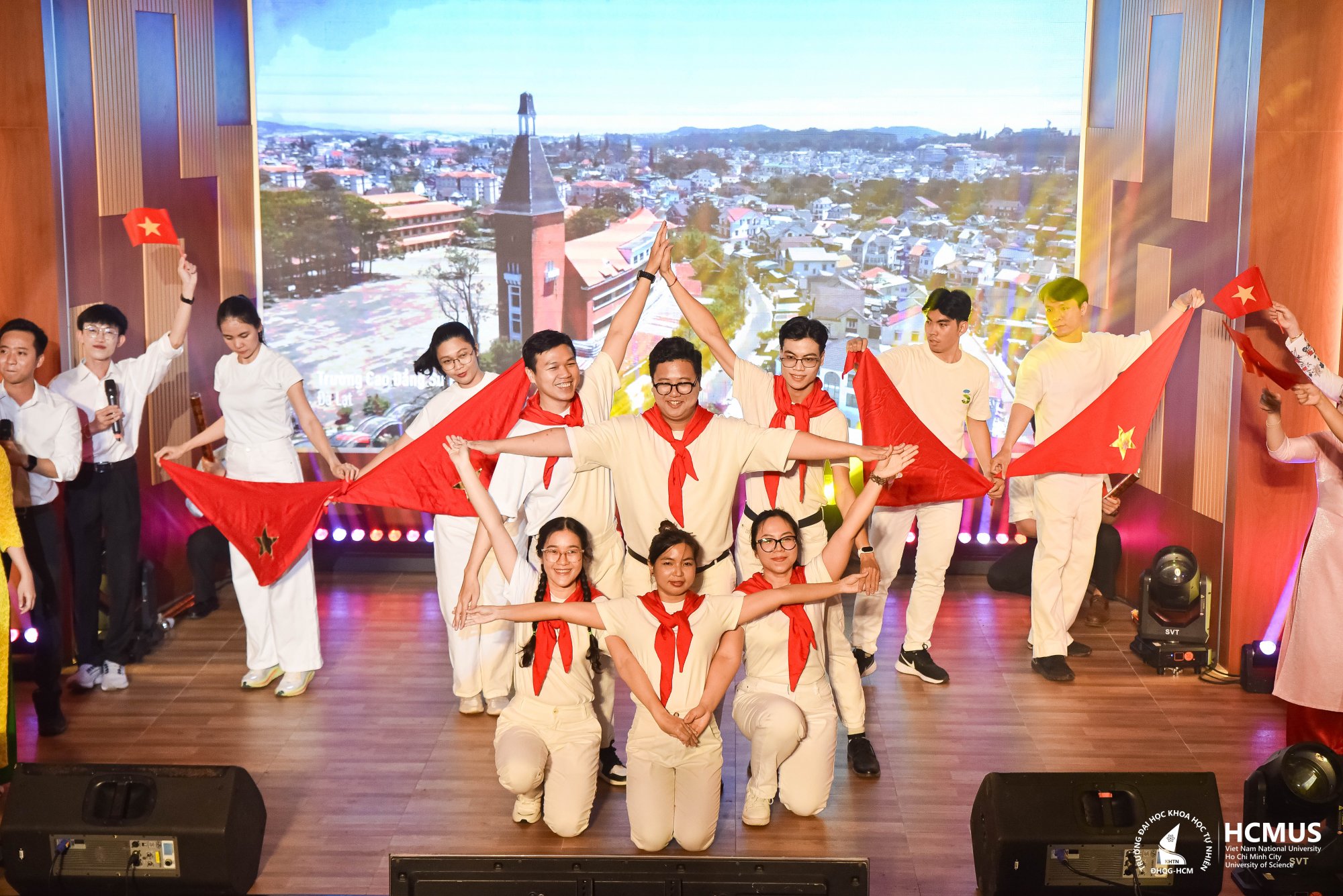 Điều làm nên sự trọn vẹn của chương trình chính là sự cổ vũ nồng nhiệt và đầy tình cảm của các bạn sinh viên Khoa SH–CNSH. Tiếng vỗ tay, những tiếng hò reo, những ánh mắt tự hào của sinh viên đã tiếp thêm năng lượng cho từng tiết mục, khiến sân khấu trở thành nơi kết nối giữa thầy và trò – một tập thể chung nhịp đập, chung lý tưởng, chung lòng yêu nước.